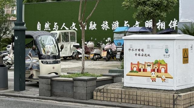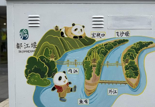 谢瑞表示,都江堰作为“三遗之城”,街头风貌本身就是城市形象的重要组成部分。“以‘熊猫一家畅游都江堰’为主题,把青城山、都江堰水利工程、安澜索桥、玉垒山、灌县古城等本地标志性景观融入手绘创作,既传递了熊猫文化、水文化、道文化,也让城市家具成为展示地方文脉的‘流动窗口’。我们希望通过这种‘绣花般’的精细设计,让市民和游客在街角偶遇一份惊喜,感受到都江堰独有的城市气质。”